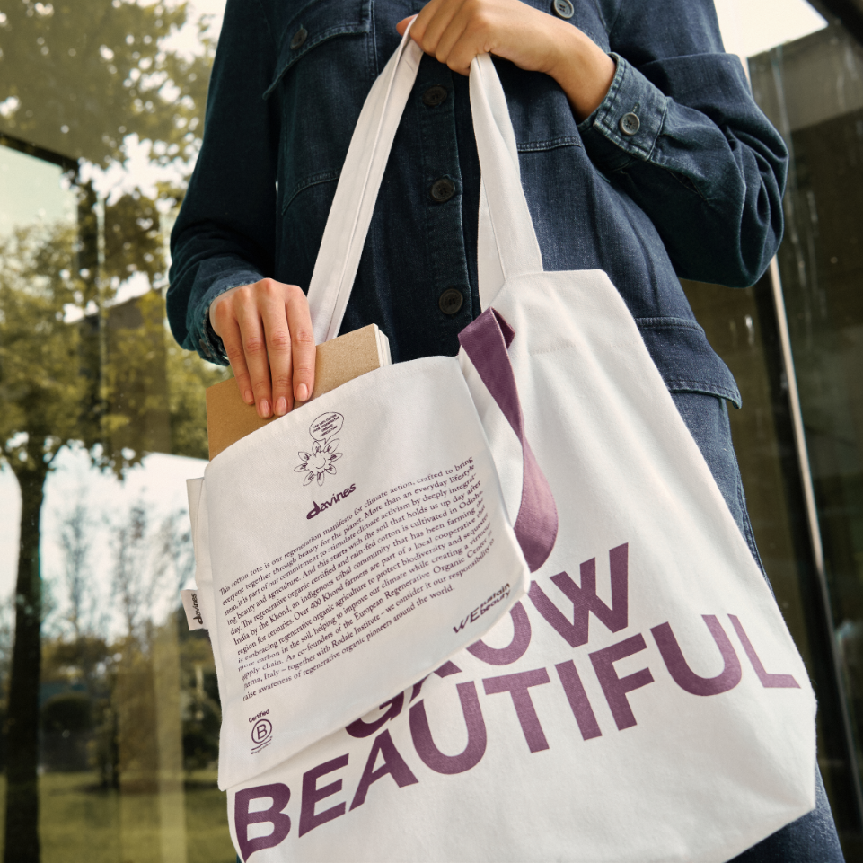 Bolsa tote de lifestyle, hecha de algodón orgánico regenerativo certificado.